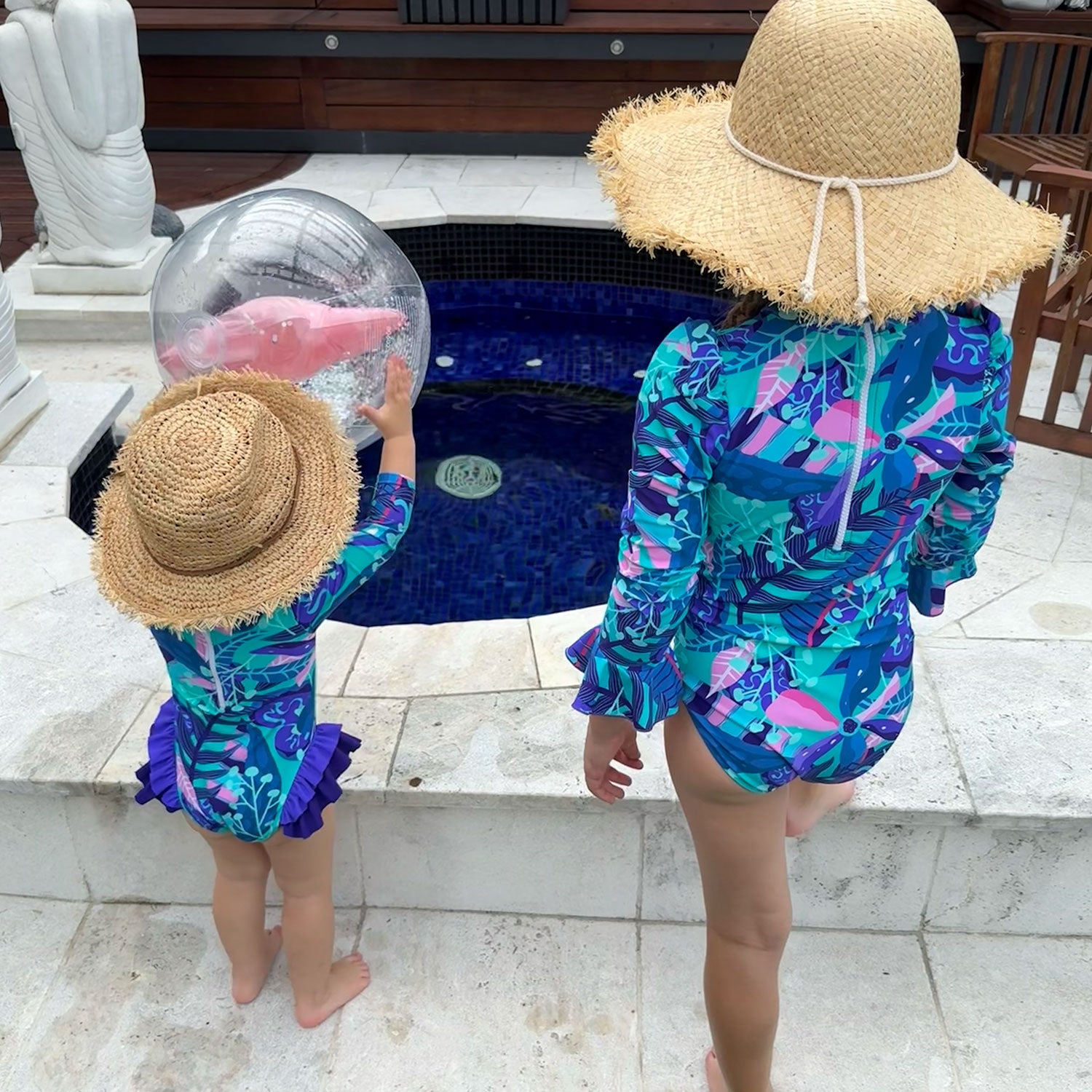 We also create matching pieces for the little ones, with swimwear for ages 6 months to 12 years, so every beach day feels like a family affair.